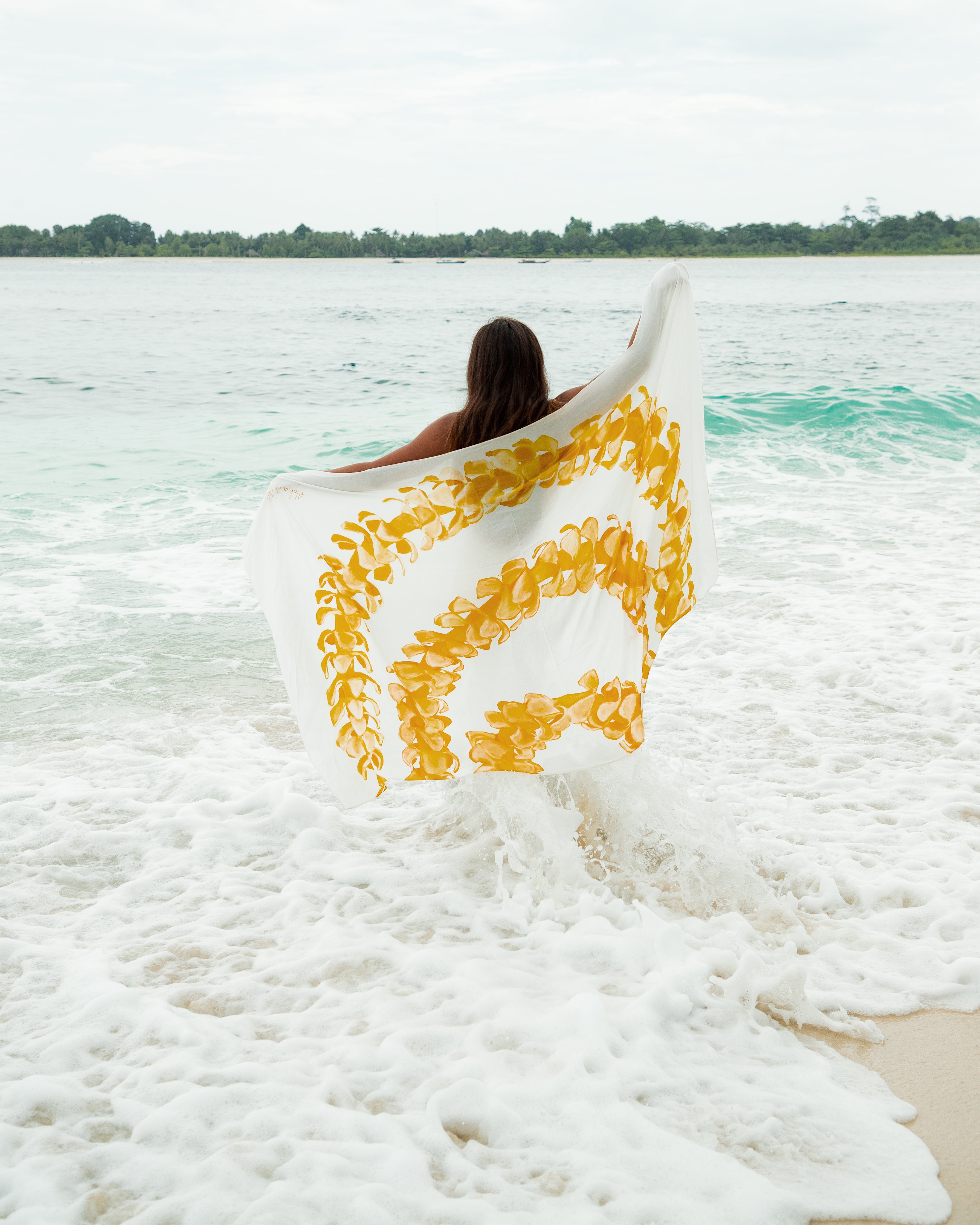 These eco-friendly, 100% soft spun rayon pareos are made with AZO free dyes and sustainably sourced materials featuring custom artwork by Hawaiian artist JT Ojerio.
