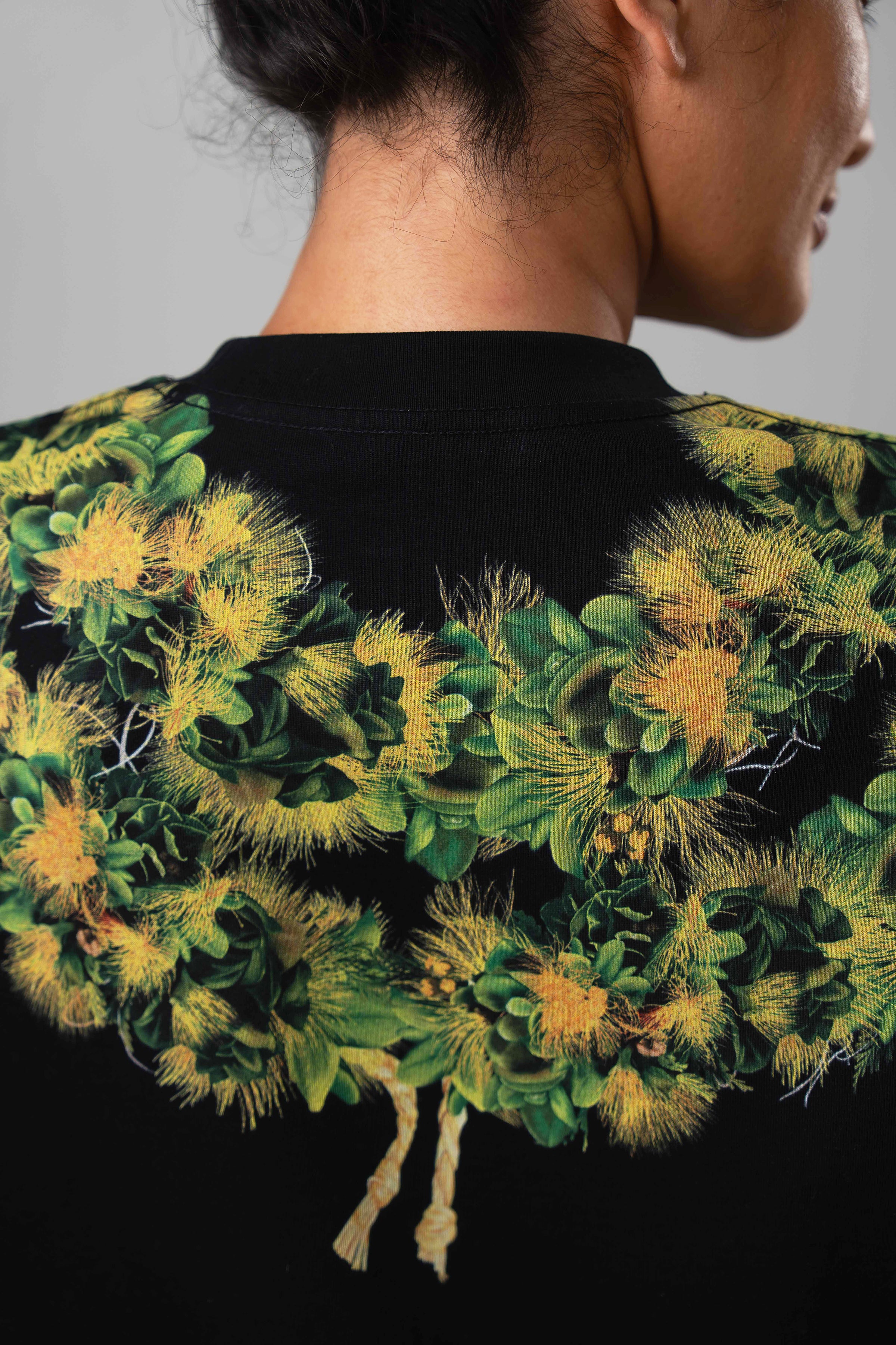 This shirt was hand-illustrated by JT, inspired by lei created by Lei Wann of Limahuli Garden. With this collaboration, we aim not only to spread awareness of ROD but also to actively help restore ʻōhiʻa.