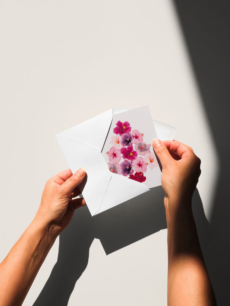 Show some love with an Aloha de Mele greeting card. Each card comes with its own envelope, blank on the inside, and the Aloha de Mele logo printed on the back.